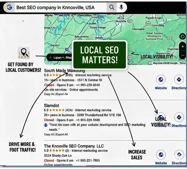 Suppose you’re searching for the best SEO company in Knoxville, USA. You will see the result come out with some local listings dominated on google map. It is a snack pack, and if you are able to rank your site on the Snack Pack, it would drive more local traffic and visits.
