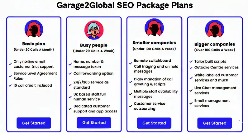 SEO package plan details delivered by Garage2Global