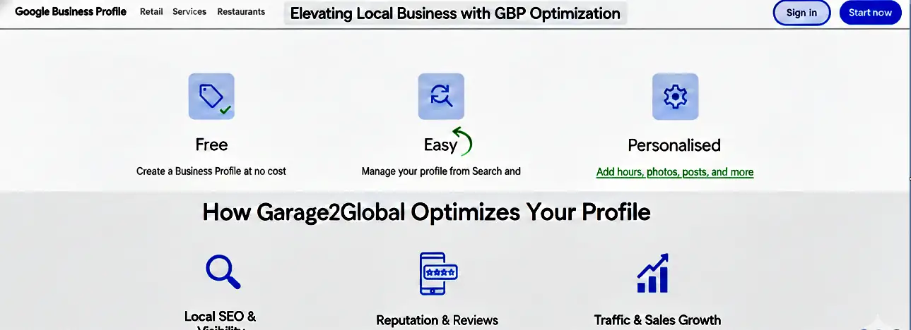 Garage2global is a digital marketing agency that provides smarter digital solutions for local businesses, especially brick and mortar stores, to gain better local visibility and increased traffic. This agency helps businesses to accelerate their local growth through expert SEO services, boost revenue by attracting clients, and make a breakthrough in the local market with a fiercely competitive manner.