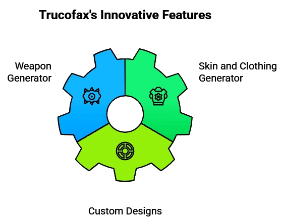Trucofax’s innovative features, specifically the Weapon Generator, Skin & Clothing Generator, and Custom Designs