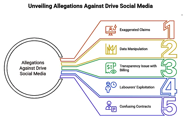 Myriad allegations against Drive Social Media are showcased below with justification.