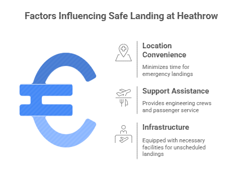 - Infrastructure: In terms of handling various unscheduled landings, Heathrow Airport is the best choice, equipped with all necessary facilities. The presence of emergency services, infrastructural assistance, and a long runway makes it ideal for larger aircraft.