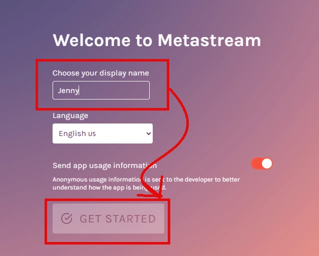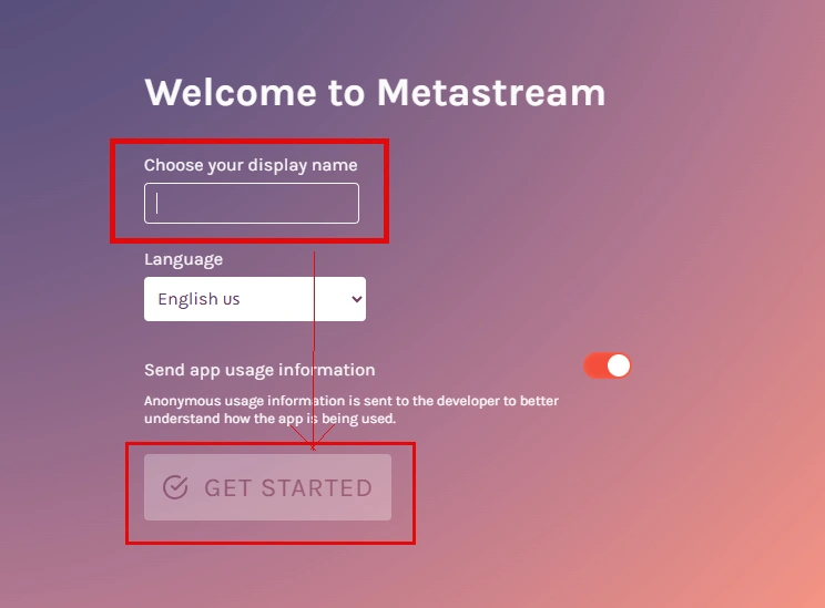 Now you are welcome to the homepage of metastream that will ask you to choose your display name for getting started with Metastream.