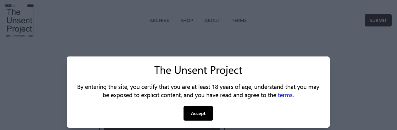 First, go to your web browser and type unsent project. The top of your search results page on Google shows the website. You also copy the web address and paste it into your browser to open it. At the top right corner of the webpage, you get a submit option. Now simply click on it, which will redirect you to the “submit a post” option.