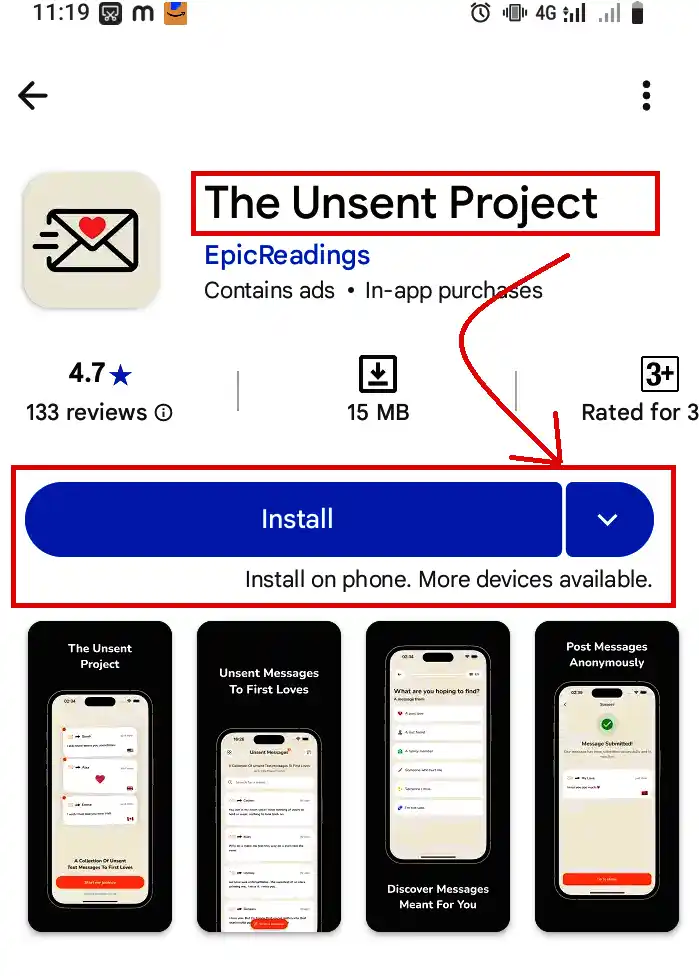 If you have an Android phone and wish to use the unsent project directly from your phone, then it’s okay.  Go to the Google Play Store and explore the app. unsent project has already crossed 1K+ downloads. Click on the install option, and save the app on your phone.