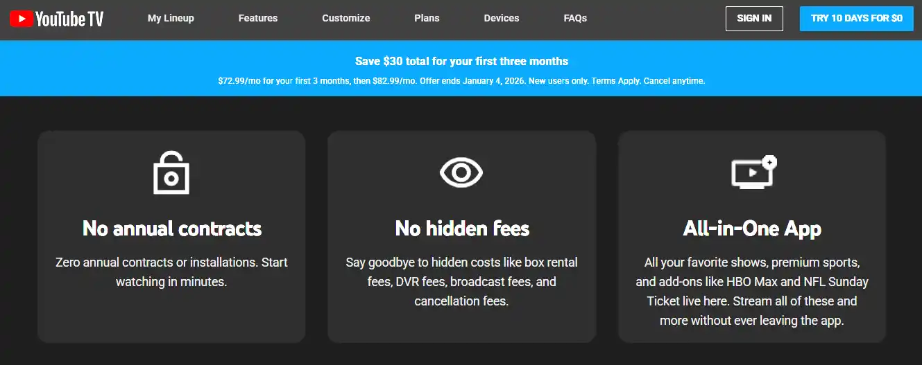 💡 YouTube TV: YouTube TV offers online sports streaming without any hidden costs. The user can purchase the plan as per their choice and enjoy all in one under the same roof.